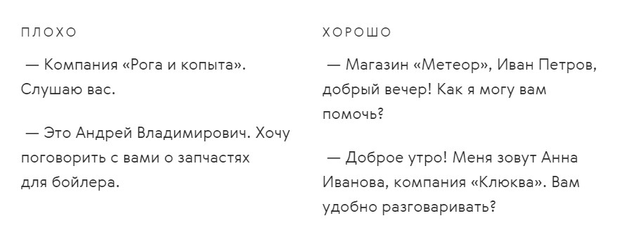 Отвечать не позднее третьего гудка. Ждать 4–5 гудков, если звоните вы.