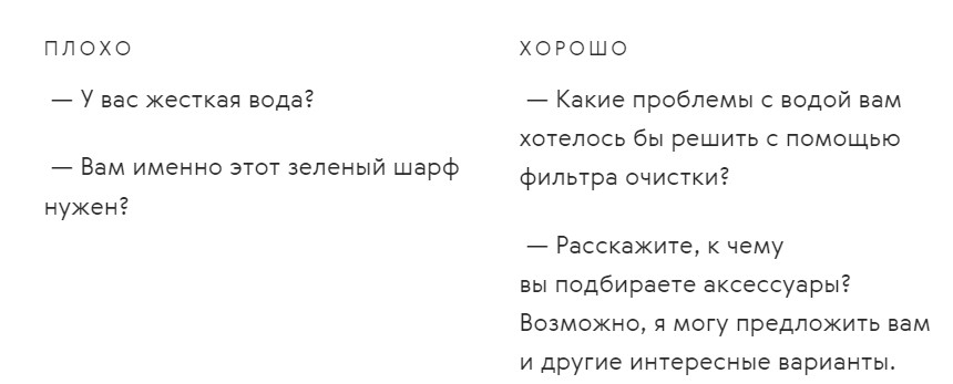 Задавать открытые вопросы, чтобы получить полное представление о ситуации или выявить потребности клиента.
