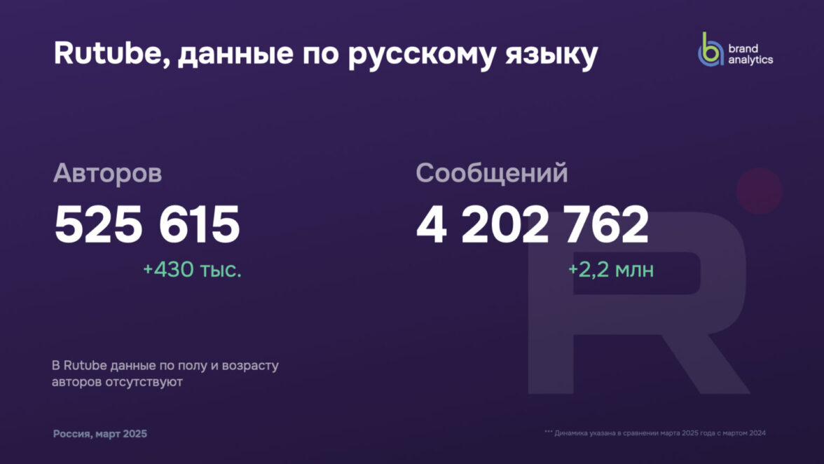 Данные по Rutube также представлены для русскоязычных пользователей без привязки к географии «Россия».