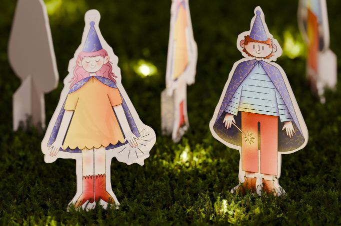 Мы вдохновлялись классическими книжными иллюстрациями, создавая персонажей в наивном, но современном стиле. Каждый ребенок изображен в одеждах настоящих чародеев, с волшебными палочками, что добавляет элемент сказочности и приключения. Такой подход делает сюжет доступным и увлекательным, а визуал — понятным и приятным для восприятия как детьми, так и взрослыми.