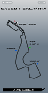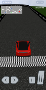 Во время движения иконка автомобиля перемещается по мини-карте синхронно с прохождением трассы. Это позволяет пользователю видеть количество пройденного и оставшегося пути, а также ориентироваться в поворотах. Также предусмотрен был таймер, отсчитывающий время заезда.