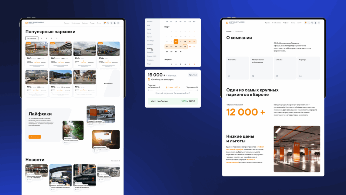 Нам нужно было полностью обновить сайт Шереметьево Паркинг — от архитектуры до визуального языка и новых функций.
