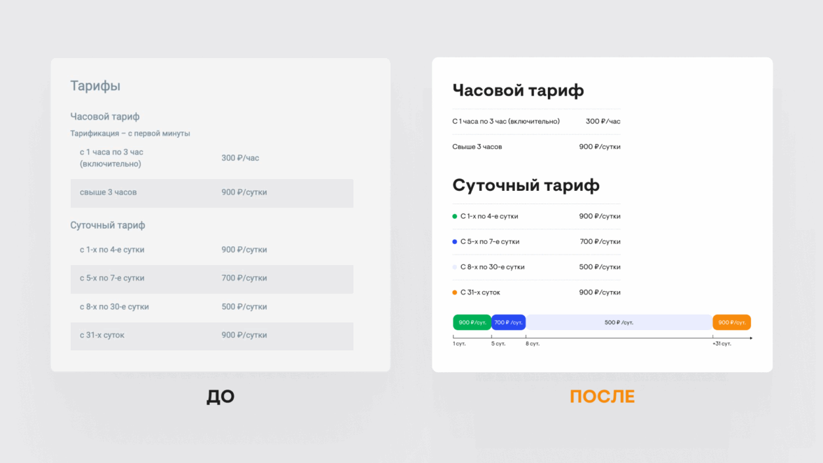 Внутри карточек наглядно показали тарифы каждой парковки.