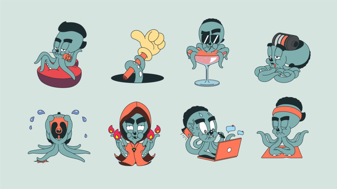Плюс тот, кто прочитал первую часть материала, получил еще и небольшой чек-лист по созданию персонажа, который можно применить и для создания бренд-героев. Ну, а мы с радостью выдыхаем и делимся с вами этим забавным и уже родным осьминогом по имени Осси. Делали стикеры, а получился маскот. Качаем тут.