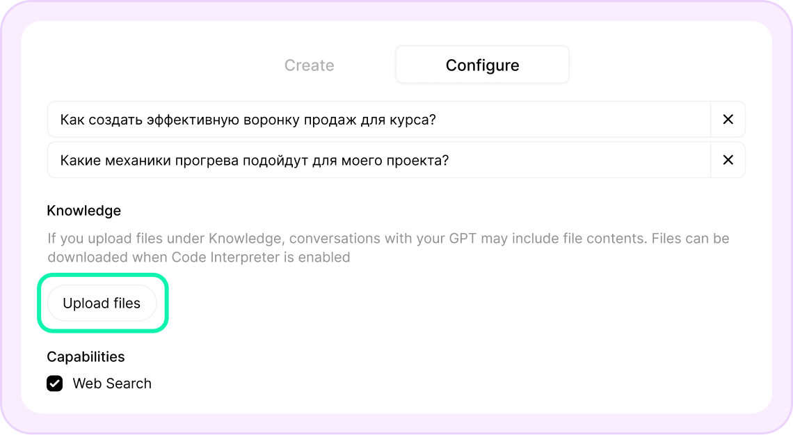 Мы загрузили в неё всё необходимое: наши авторские методички, учебные программы, а также полезные материалы других школ. Отдельно прописали в инструкции, чтобы она всегда в первую очередь ориентировалась на нашу собственную базу знаний.