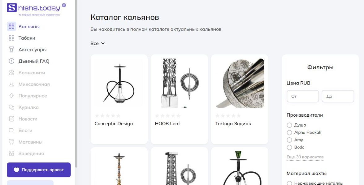 Прежде всего стоит сказать, что главная цель разработки Shisha.today состоит в агрегации всех членов отраслевого сообщества и вовлечении тематической аудитории. Платформа создаёт условия для сбора кальянного комьюнити, предоставления актуальных и полезных материалов, а также облегчения знакомства с разнообразной кальянной продукцией.