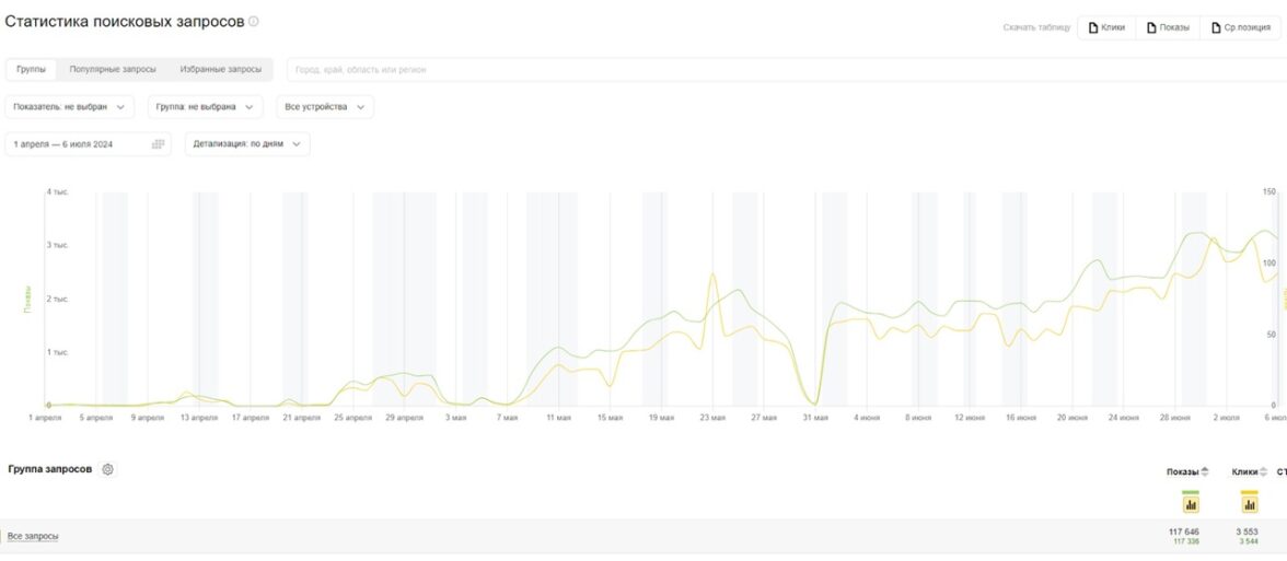 Одним из важнейших этапов реализации проекта для нас стало продвижение сайта в поисковых системах через детальную проработку семантического ядра. Этот процесс включал в себя подбор и адаптацию ключевых слов и сбор релевантной семантики, что заложило основу для дальнейшего привлечения органического трафика. После этого мы приступили к созданию SEO-статей для сайта: при этом финальное техническое задание (ТЗ) для копирайтера было составлено с учетом собранного семантического ядра, что в дальнейшем обеспечило высокую релевантность и качественный контент. Таким образом, на сайте нет ни одной «пустой» статьи, так как каждый материал включает в себя тот или иной ключевой запрос для повышения индексирования.
