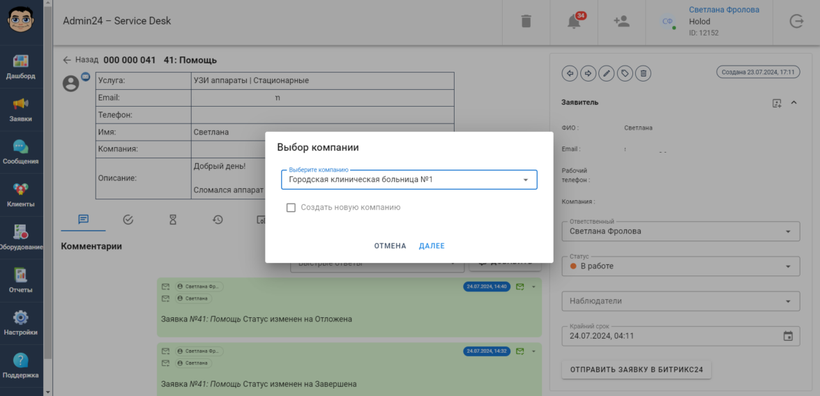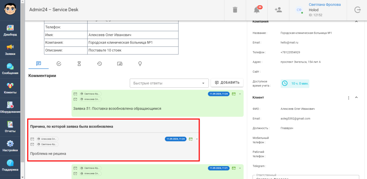 Примечание! Функционал будет работать как для клиентов с личным кабинетом (при возобновлении заявки оттуда), так и без него (при возобновлении заявки по электронной почте, в мессенджере).