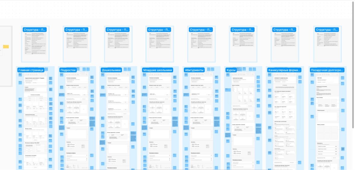 Разработав структуру страницы, мы приступили к проектированию пользовательского опыта. Важно было создать удобный и интуитивно понятный интерфейс, который поможет пользователям легко ориентироваться на сайте. Мы создали низкодетализированный прототип сайта, который послужил техническим заданием для дизайнера в дальнейшем.