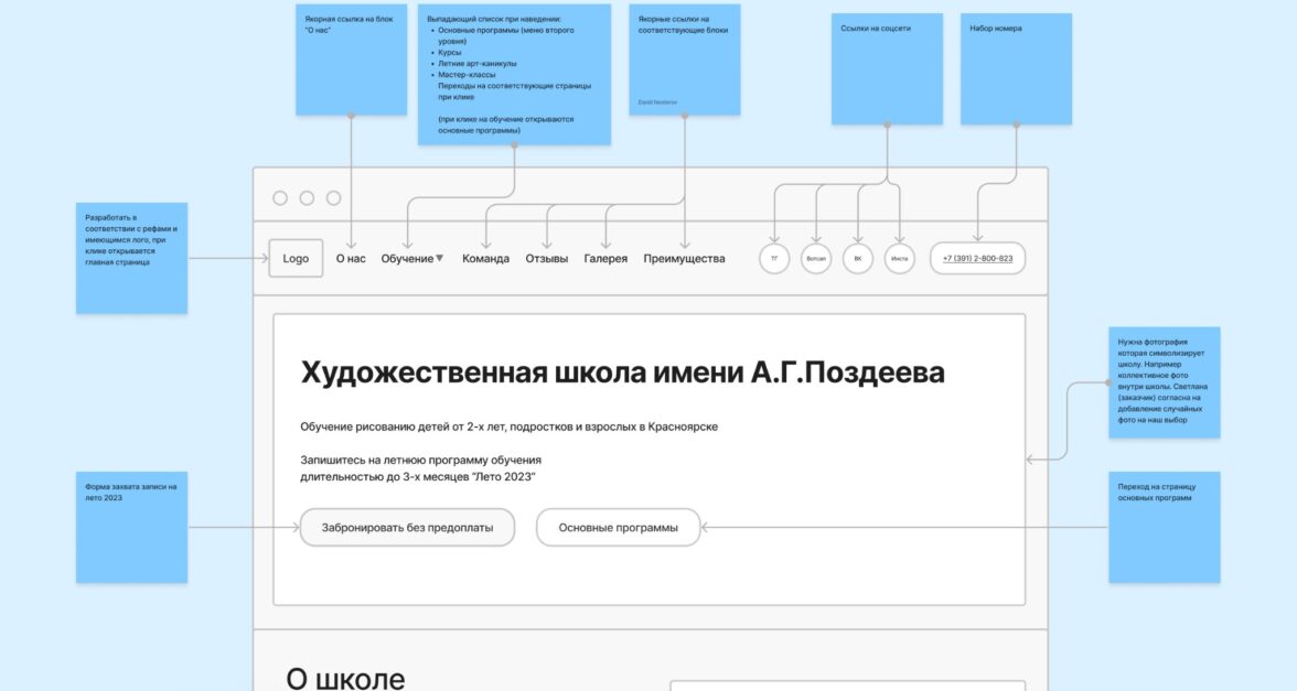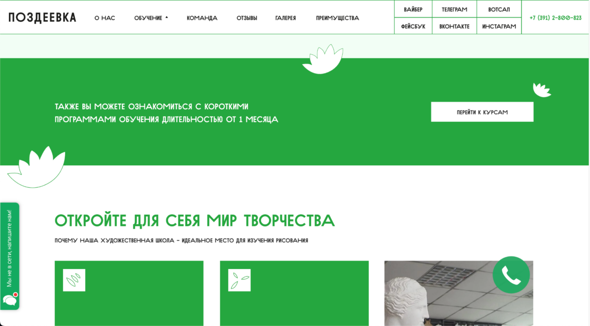 После того, как сайт был создан и протестирован, наша команда подключила доменное имя, сертификат безопасности, и передала сайт заказчику. Теперь пользователи могут легко и быстро записаться на уроки рисования, используя удобный и интуитивно понятный интерфейс. Отслеживая статистику событий за первую неделю после тестирования мы зафиксировали значительный рост показателей внутренней конверсии и повышения трафика из поисковых систем.