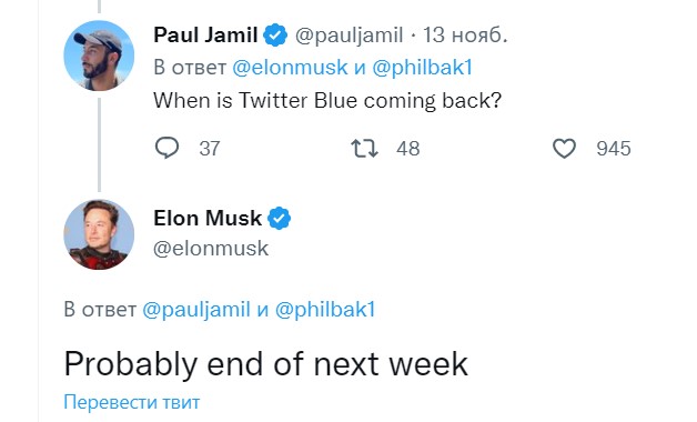 В одном из ответов пользователю Маск написал, что подписка, возможно, снова заработает в конце недели.