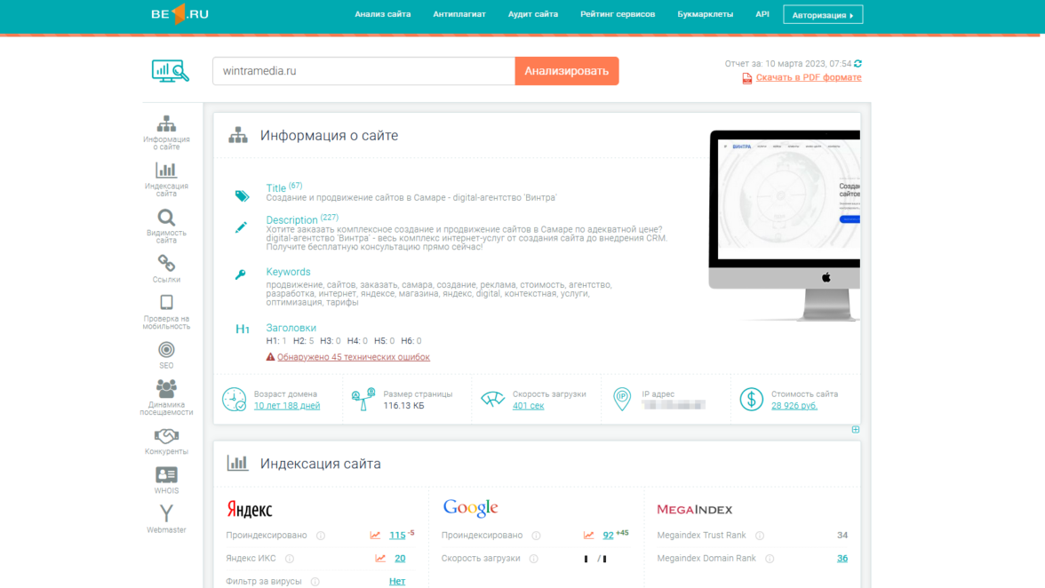 Большинство этих показателей можно узнать с помощью бесплатного ресурса Be1.ru.