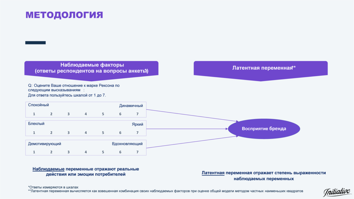 Методология исследования построена на анализе восприятия как бренда, так и самого шоу — через серию вопросов респондентам. На основе их ответов формируются группы показателей, отражающие то, как потребитель воспринимает бренд и проект в целом. Для бренда оцениваются следующие параметры: общее восприятие, эмоциональное восприятие, отношение к бренду и намерение приобрести продукт. В блоке параметров шоу измеряем то же, что для бренда, но намерение приобрести заменяем на соответствие шоу и бренда.