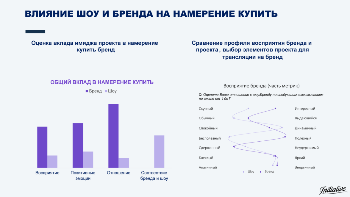 Правильный выбор шоу для интеграций критичен для успеха спонсорства бренда (его влияние на намерение купить продукты бренда более чем вдвое превышает влияние других аспектов имиджа шоу).