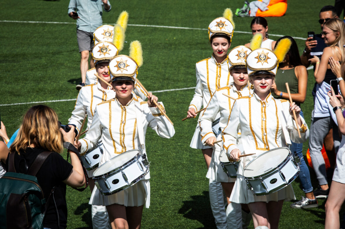 Фактор эмоциональности был дополнен выступлением футбольных фристайлеров, которые показали потрясающие номера и провели мастер-класс для желающих. Не менее впечатляющим стало выступление барабанщиц: мощные ритмы и синхронность произвели эффект разорвавшейся бомбы.Завершением этого блока стал флешмоб на главной сцене, который собрал всех участников и зрителей и создал атмосферу праздника и единения.
