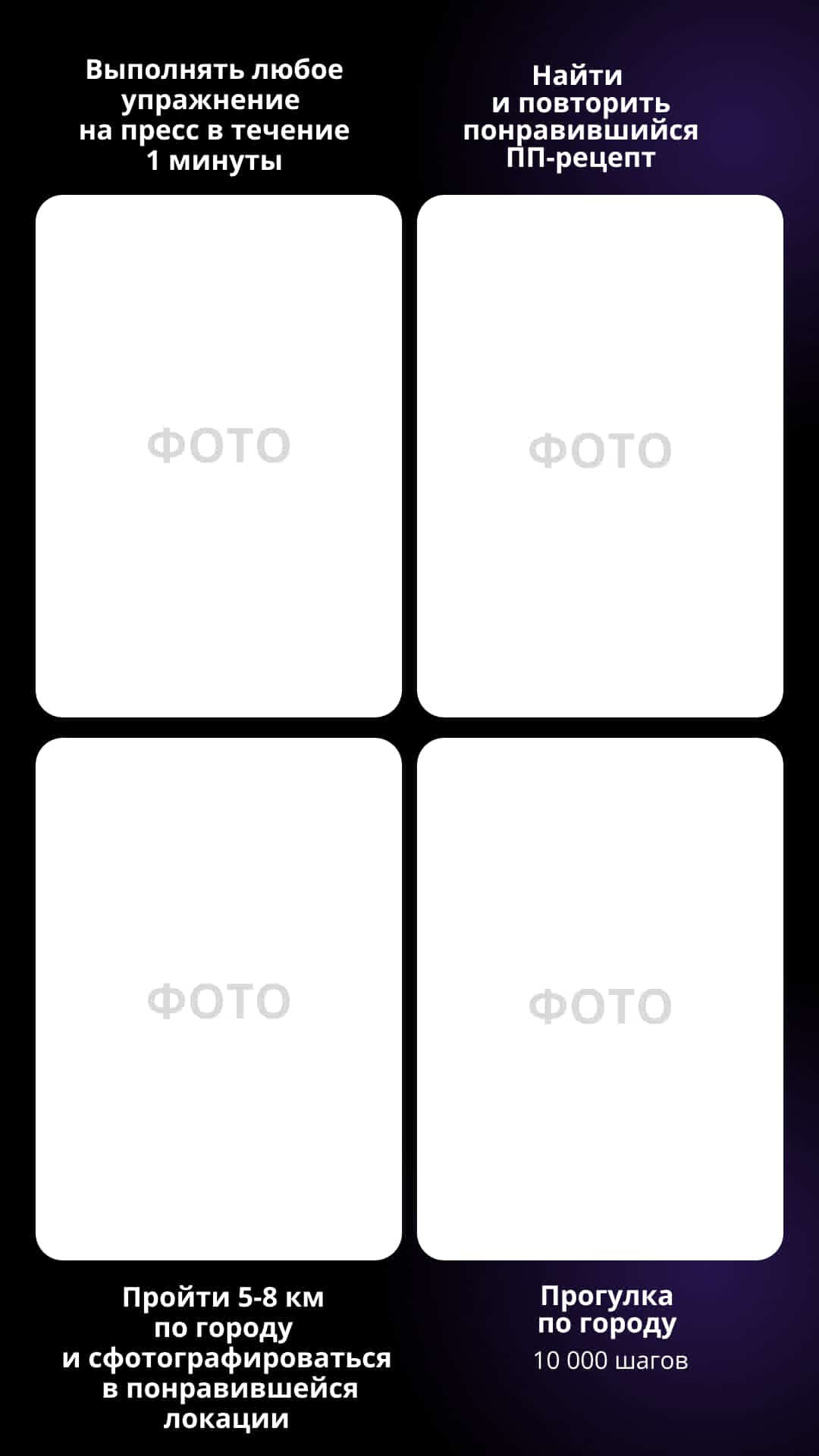 Участникам нужно было до конца недели выполнить все задания, делать фото в процессе и вставлять их в макет. Потом выложить результат в Instagram* и отметить наш аккаунт.