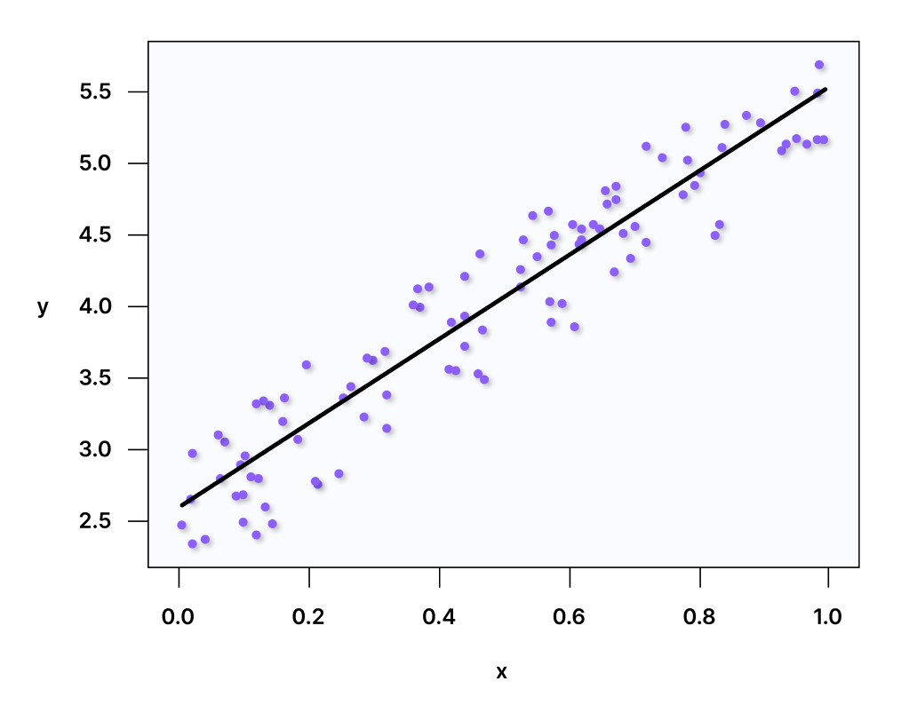 Смысл метода в том, чтобы соотнести одну переменную N с другой переменной или несколькими. Условно на плоскости есть точки данных, для которых нужно найти наиболее подходящую линию, которая их соединит.