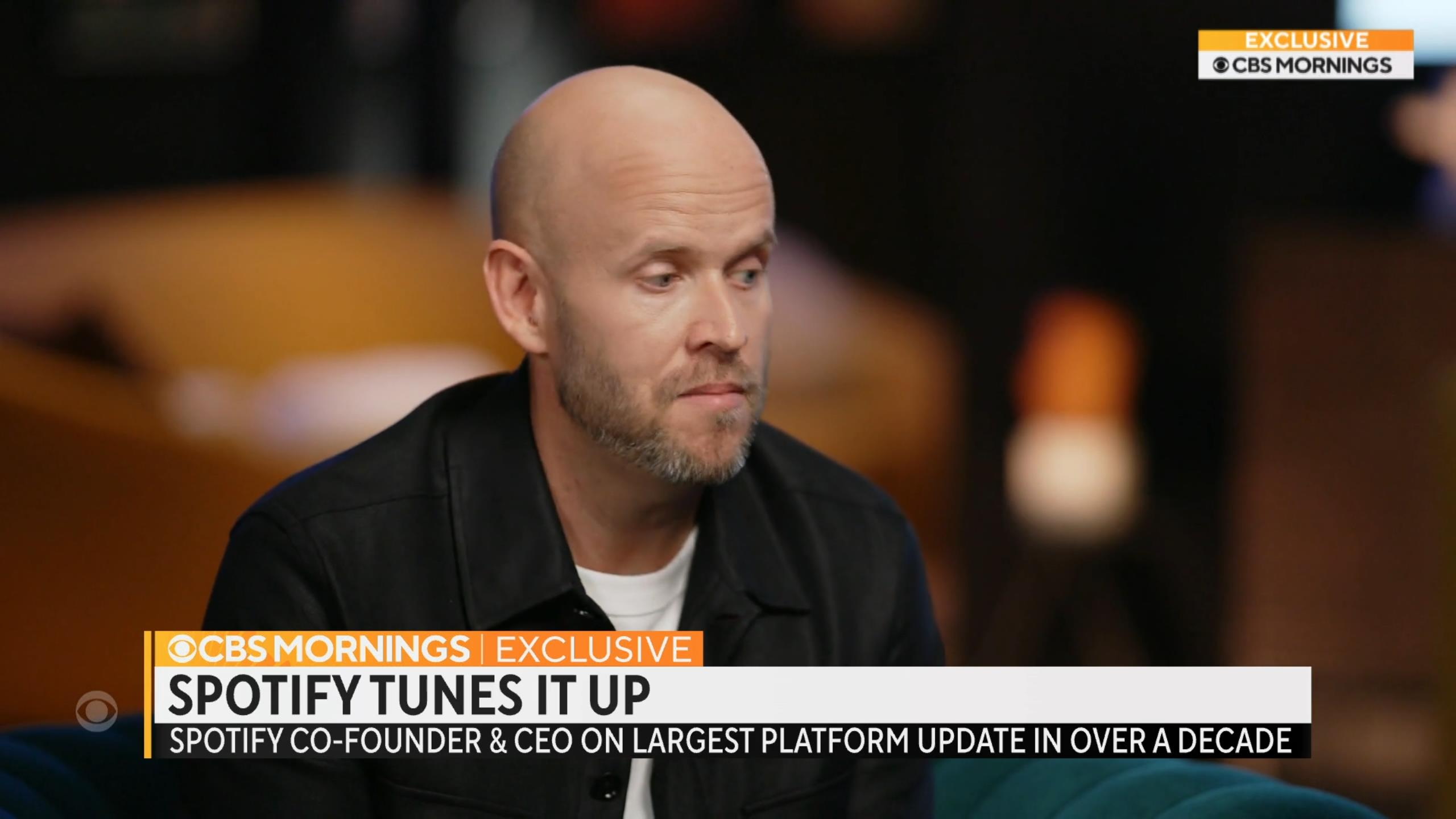 В эксклюзивном интервью программе «CBS Mornings» генеральный директор и основатель Spotify Даниель Эк сказал, что обновления включают «совершенно новую» домашнюю ленту, которая «полностью переработана с нуля». «Я думаю, вы увидите, как Spotify оживает. Вы увидите гораздо больше интерактивного контента», — сказал Эк.