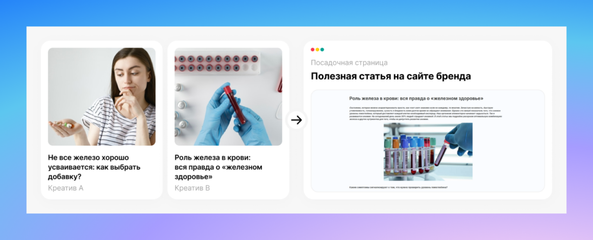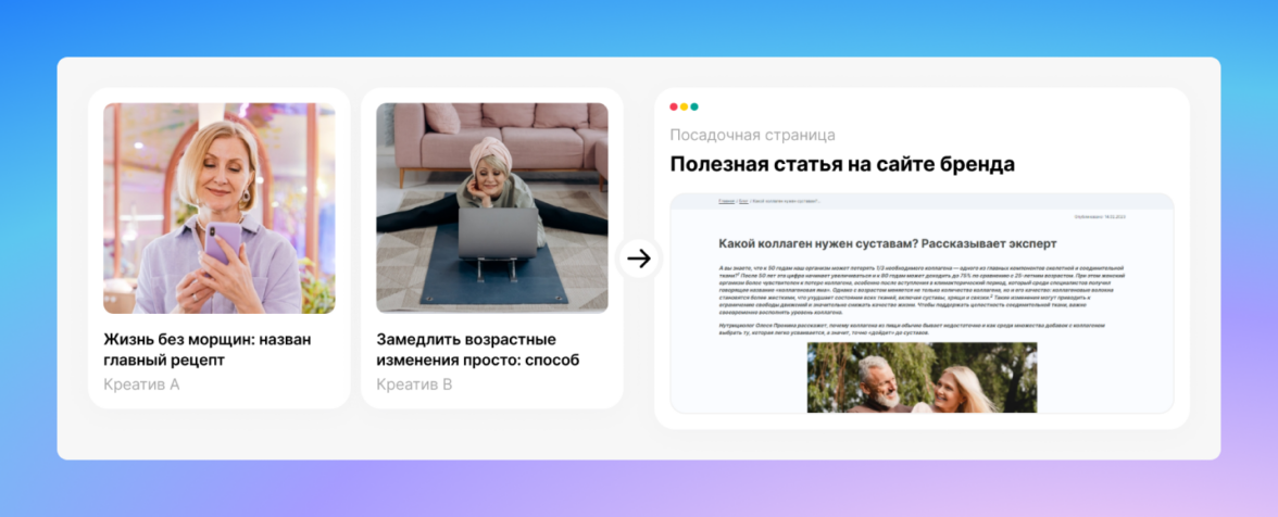 Нативные креативы и статьи на посадочных страницах оказались наиболее эффективными. Мы смогли задеть важные для аудитории аспекты и разместили рекламу БАДа в статье, которая предлагала решения. Это обеспечило CPA на уровне 700 рублей.