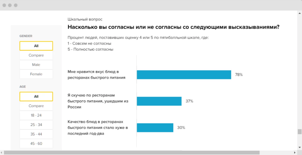 Большинство аудитории согласились с тем, что им нравится вкус еды в ресторанах быстрого питания.