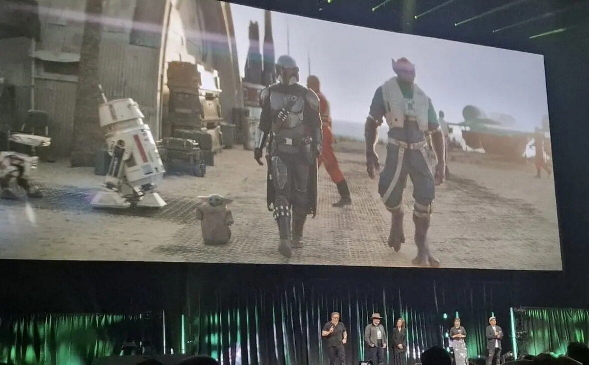 Гвоздем шоу, разумеется, стал первый с 2019 года полнометражный фильм франшизы «Мандалорец и Грогу», премьера которого запланирована на 22 мая 2026 года. Съемки проекта завершились в конце 2024 года, сейчас фильм проходит постпродакшн. Сценарист и режиссер «Мандалорца и Грогу» Джон Фавро подтвердил фанатам, что новый фильм будет намного масштабнее и зрелищнее, чем сериалы франшизы, которые они видели за последние годы на стриминговом сервисе Disney+. Джон Фавро подтвердил, что фильм будет представлен в формате IMAX, поэтому декорации и окружение пришлось скорректировать, чтобы соответствовать масштабу. Например, для съемок был построен в полную величину имперский шагоход AT-AT. «Не буду врать, (шагоход) выглядит здорово», — поделился впечатлениями режиссер.
