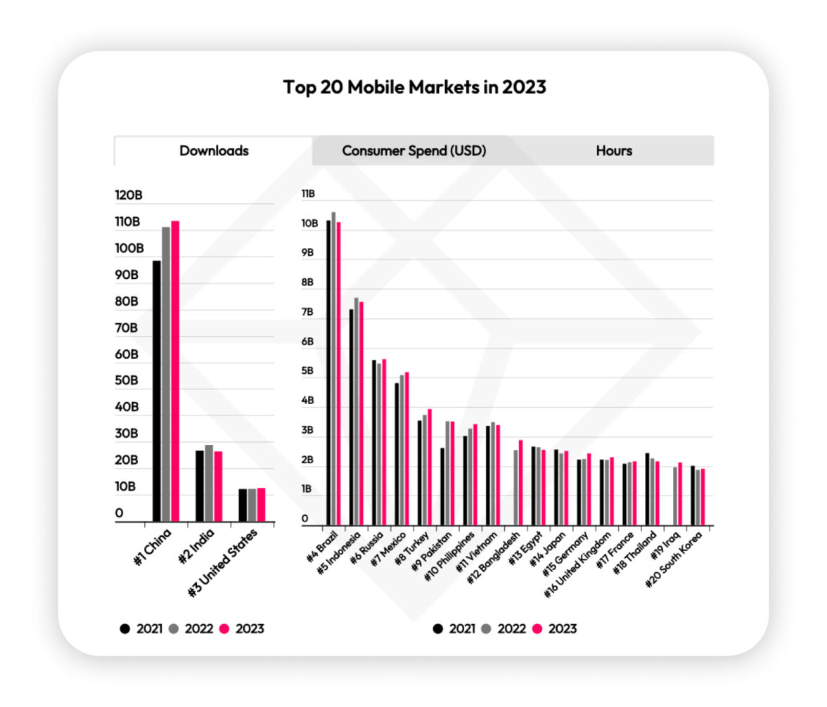Глобальные расходы потребителей выросли на 3% в 2023 году после 2% снижения в 2022 году. В ряде стран, таких как Южная Корея, Бразилия, Мексика и Турция, отмечается более 25% годового роста. Более того, время, проведенное в сети, выросло на 10%. В то же время, Бангладеш стал одним из самых быстрорастущих рынков.