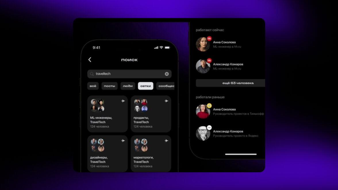 Как это выглядит: после регистрации, в профиле появится окошко «сетки». Внутри — список ваших коллег из разных компаний, разделенный по сферам работы. По профессиям в сетках будут маркетологи, HRD или HR-менеджеры и, например, CFO. В компаниях — ваши общие места работы. Индустрии же соберут пользователей широким спектром и разделят, например на HRTech, Social, Finance, EdTech и другие.