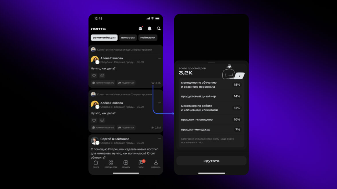 С этой функцией авторы получат углубленное понимание своей аудитории. Мы добавили отображение ролей пользователей, которые видели ваш пост. Например, можно будет увидеть, какие публикации чаще попадают в ленту к маркетологам и пиарщикам, а какие читают в hr-среде.