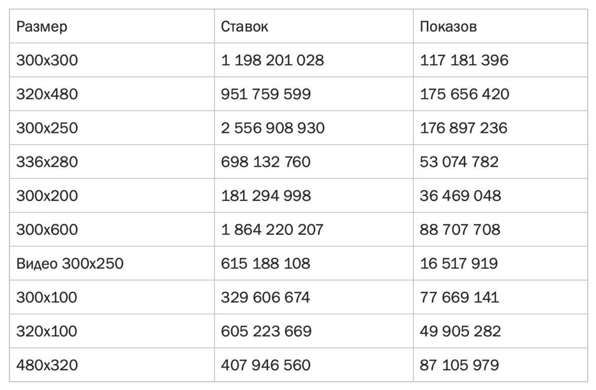 Дополнительную статистику по инвентарю Digital Caramel добавила команда RTBSape — в рамках данных о его выкупе своими клиентами и партнерами. Это позволило чуть шире взглянуть на интересы рекламодателей в различных разрезах и свойствах трафика. Окончательные данные разделены в соответствии с факторами, влияющими на показатель, а именно по форматам рекламы, геолокации и по видам устройств.