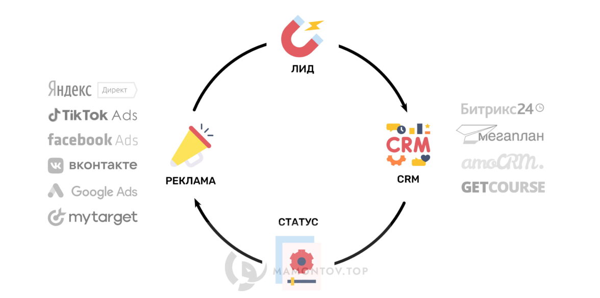 Статусная аналитика — это набор методов по повышению эффективности рекламных кампаний, основанный на передаче статусов лида из CRM-системы в рекламные системы и системы аналитики.