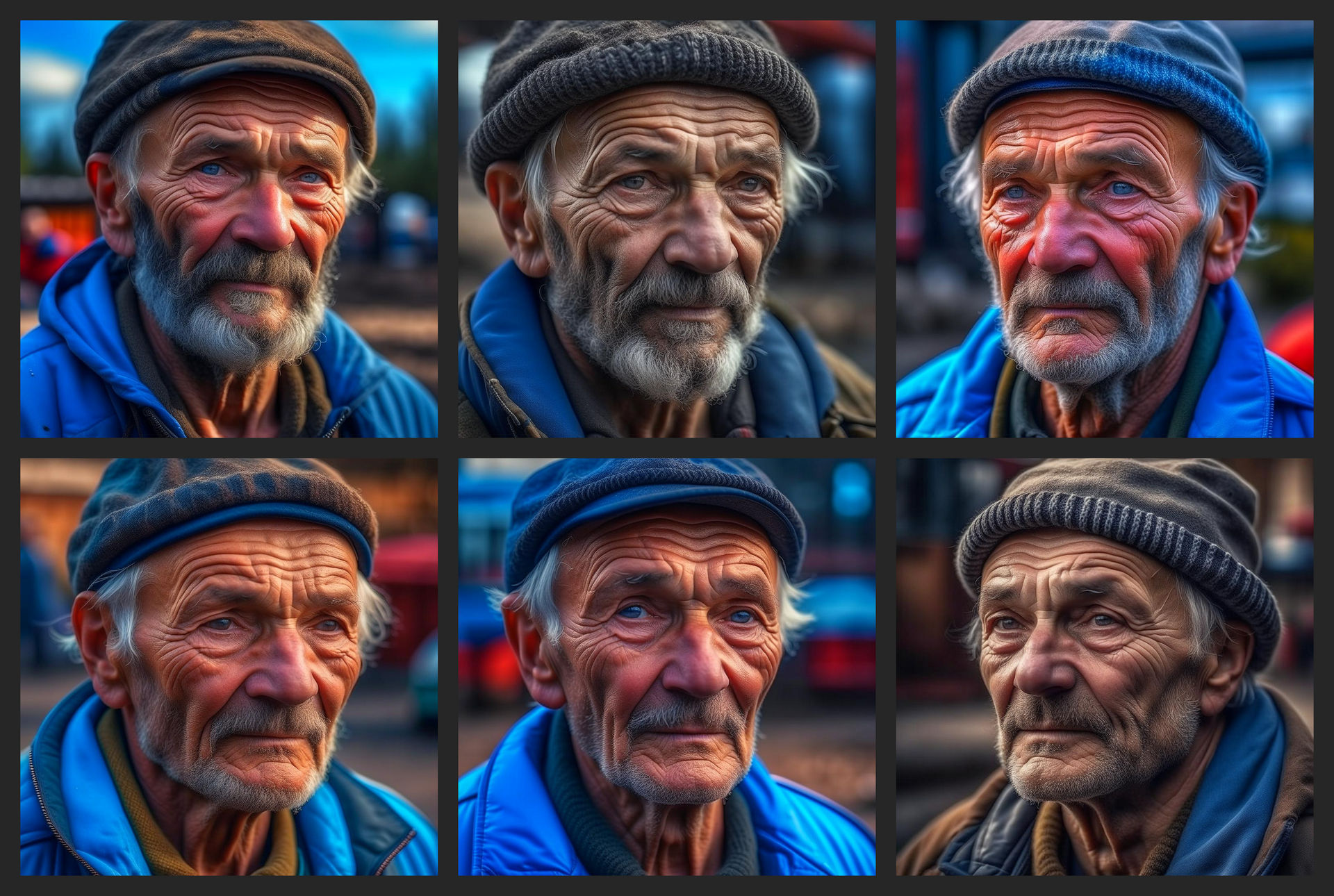 Нейросеть Kandinsky результатами разочаровала. Человек из России для нее — один и тот же проживший нелегкую жизнь мужчина с печатью похмельной скорби на лице.