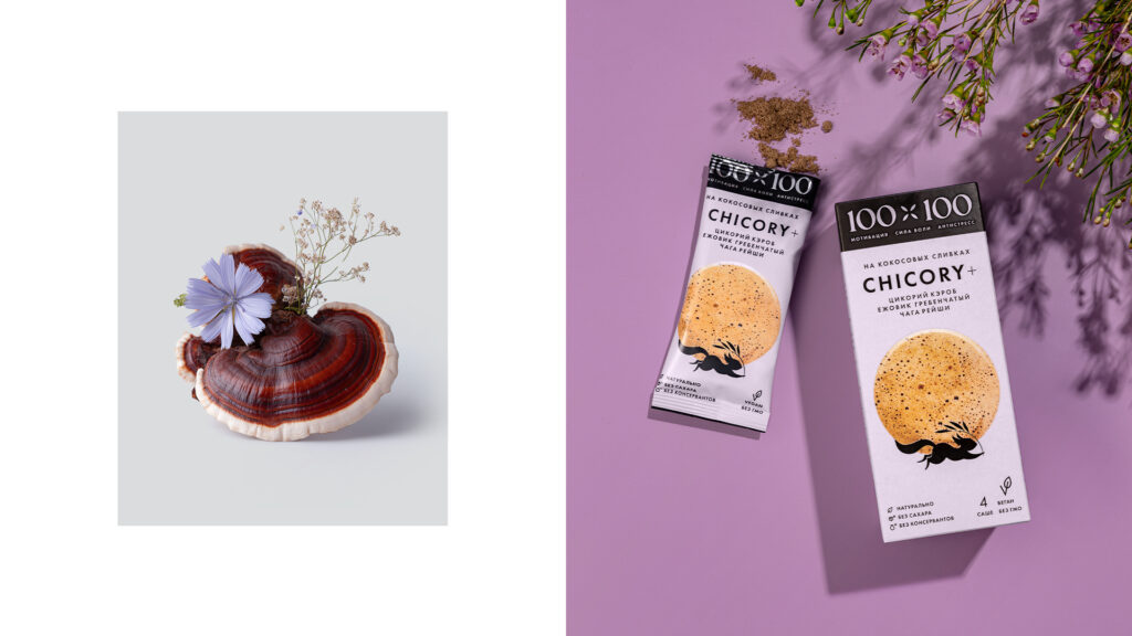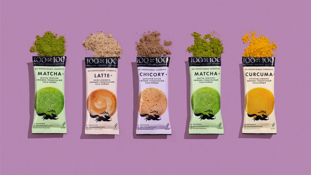 Перед агентством Ohmybrand стояла задача создать упаковку для современной аудитории ЗОЖ, которые хотят жить в своем ритме, быть продуктивными и все успевать, одновременно заботясь о своем здоровье и чувствовать себя бодро. Продукт — линейка полезных растворимых напитков без лактозы, с низким содержанием или без сахара, объединяющая привычные вкусы (латте, матча, цикорий, куркума) и мощные функциональные компоненты: адаптогенные грибы (рейши, чага, ежовик гребенчатый), морской коллаген и другие с доказанной пользой для организма.