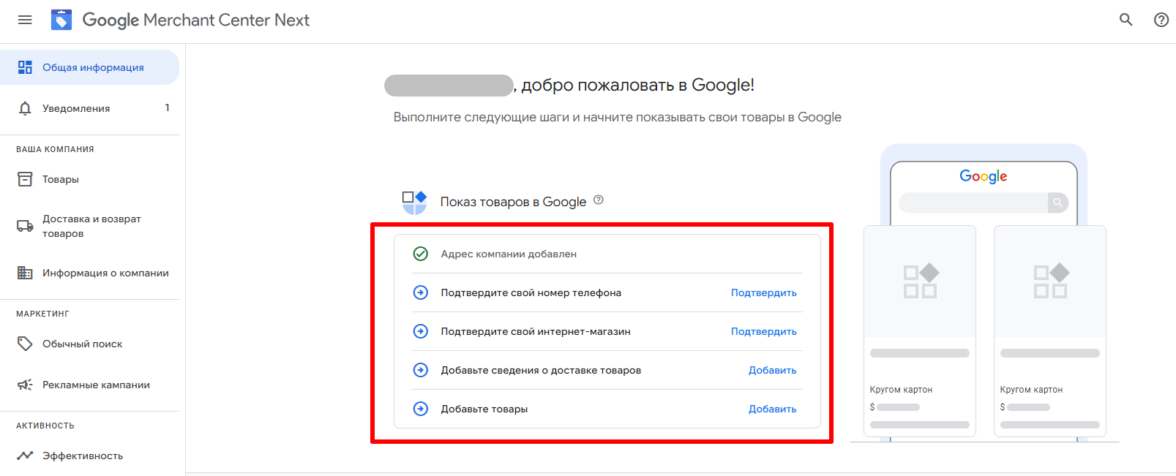 Подключиться можно к классическому Merchant Center или более новой версии — Merchant Center Next. Мы выбрали Merchant Center Next — в нем больше возможностей. Старую версию, скорее всего, скоро отключат, поэтому решили не тратить на нее время.