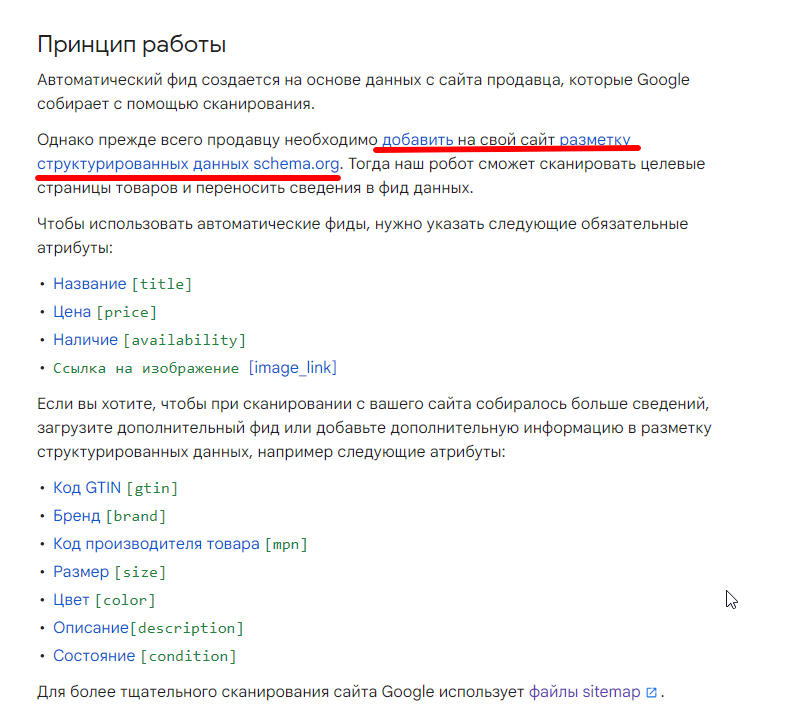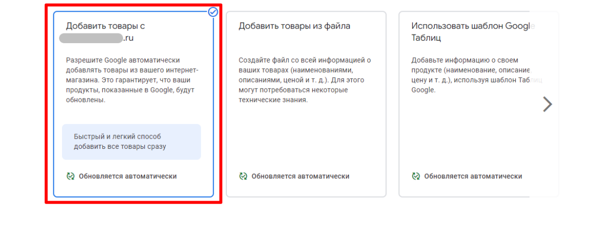 Для загрузки товаров можно использовать несколько способов. Самый простой, но эффективный — разрешить Google самостоятельно получать информацию с сайта. Мы использовали именно его.