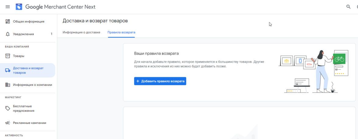 Укажите правила возврата товаров. Это необязательно, но лучше заполнить все поля и графы.
