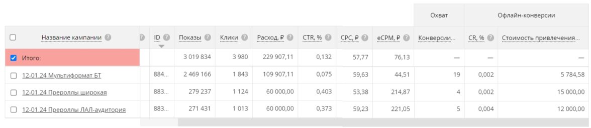 9 конверсий принесли прероллы — неплохо, их qCPL составил 14 400–18 000 рублей.