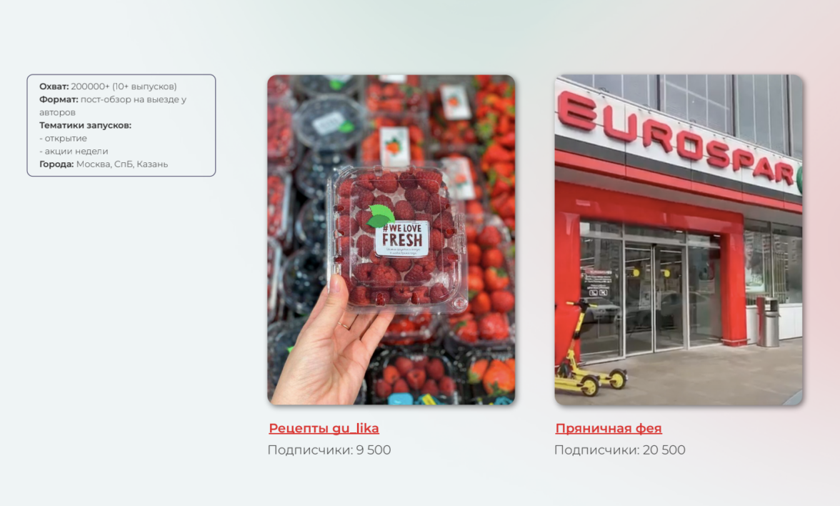 определите конкретную торговую точку (самую презентабельную, у которой происходит открытие или которой нужен поток гостей) — не учтя это, можем столкнуться с тем, что ближайшая для инфлюенсера может оказаться с дверью по соседству с сексшопом с ОООогромной неоновой вывеской и/или сокращенным ассортиментом сети (особенно если магазины сети делятся на категории);