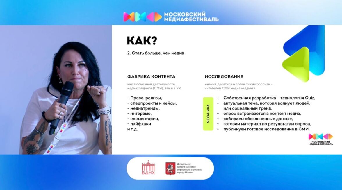 Трансформации ВДНХ, одной из старейших выставочных площадок Москвы, была посвящена сессия «Музеи и галереи: как привлечь новую аудиторию». Директор департамента общественных связей и маркетинга ВДНХ Гахара Шаруева рассказала, что благодаря реставрации, реновации старых и открытию новых объектов показа, стабильной PR-поддержке и активности команды в соцсетях посетители выставки стали воспринимать пространство ВДНХ как «музейный город».
