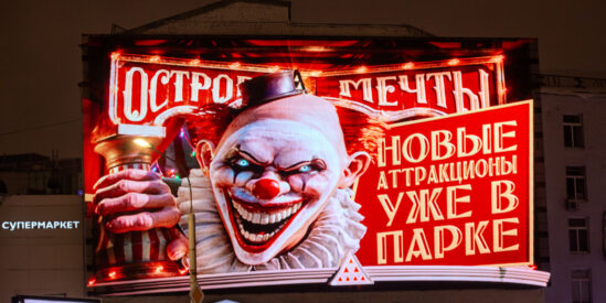 Страшно весело: 3D-реклама с гигантским клоуном из «Острова Мечты»