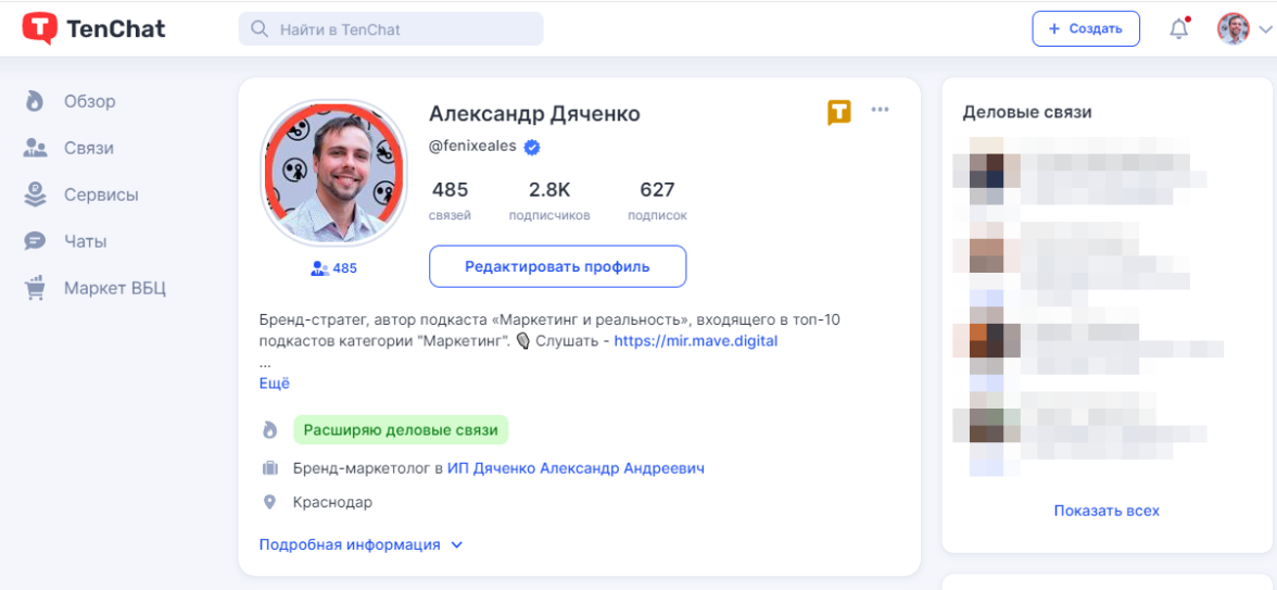 Мы помним, что проблема донесения смысла использования новой социальной сети — это сложная идея. Нужно больше времени на коммуникацию и определенный уровень доверия. Маркетплейс ВБЦ сыграл важную роль для выстраивания широких мостов между Теняевым и его ЦА. Первые пользователи узнали про TenChat именно там.
