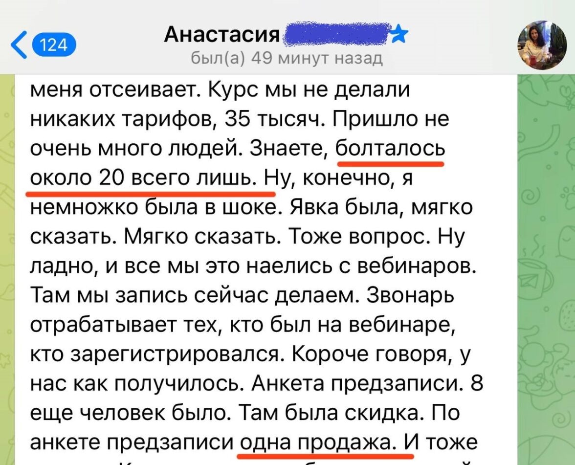 Из 20 человек на эфире можно взять 3–7 продаж в зависимости от чека. А здесь всего одна