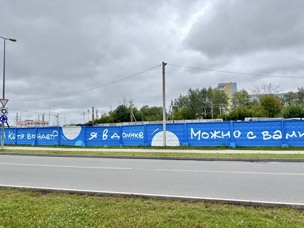 Реплики из дворового детства мы усилили стилем оформления: предложили «Орсо групп» написать их от руки. В этом есть и практическое значение: строительные заборы нередко становятся «холстом для вольных городских художников», а здесь уже всё написано — и добавить нечего.