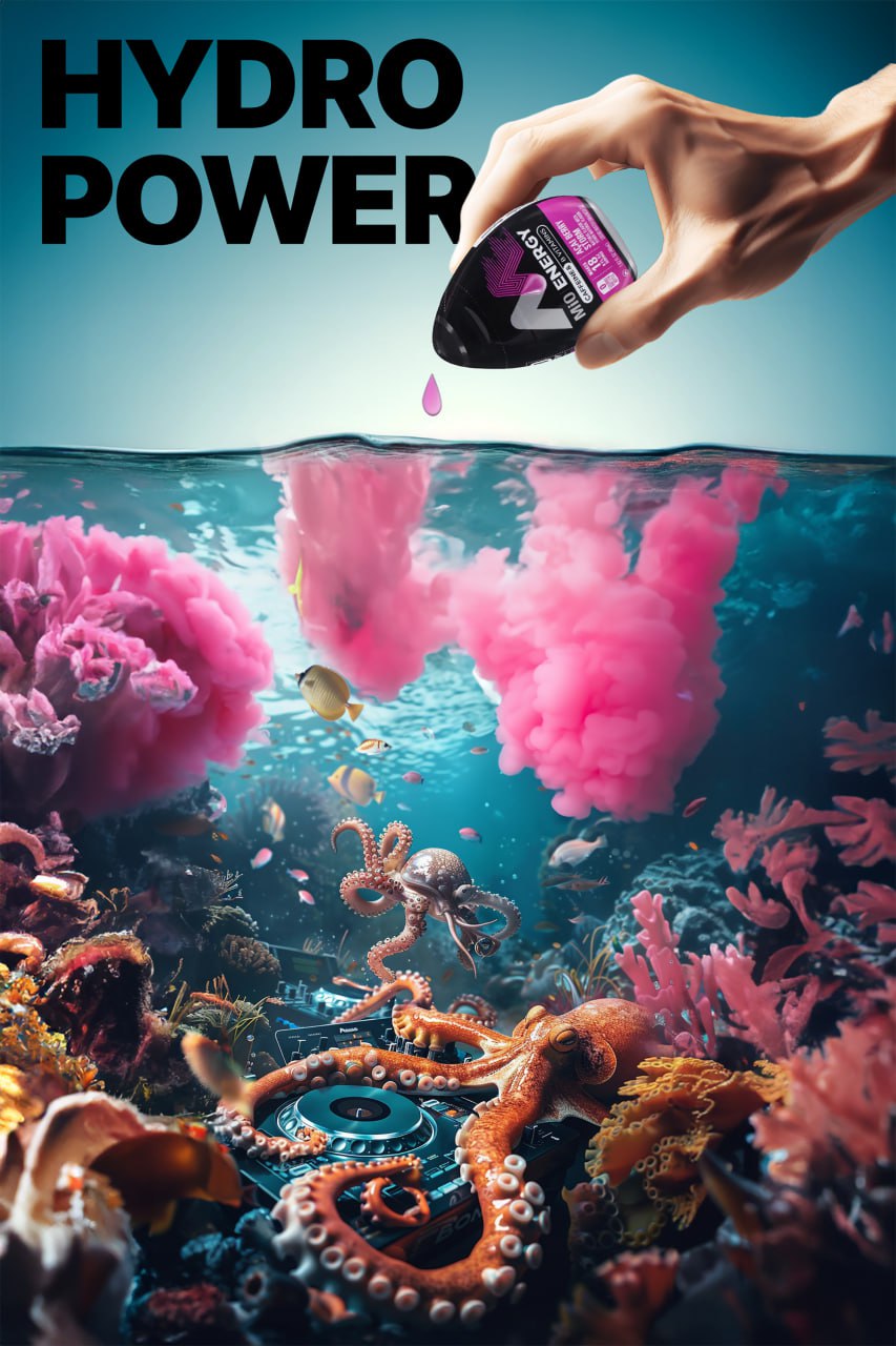 С помощью оригинального визуального решения и метафоры удалось рассказать о концентрате для напитков MiO Energy, который превращает воду в энергетик.
