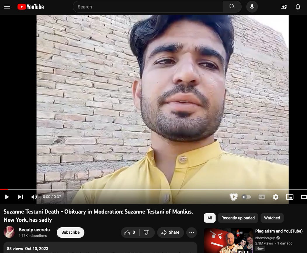 Совсем возмутительным является тренд на создание ИИ-спама для YouTube на основе некрологов. Спамеры берут информацию об ушедших из жизни с сайтов похоронных бюро и из локальных медиа, чат-боты переписывают текст в разговорном стиле, чтобы не нарушать формально авторских прав, затем этот текст начитывает ведущий в кадре, а видео снабжается подходящим для SEO-оптимизации заголовком и тегами.