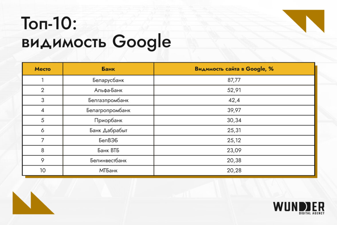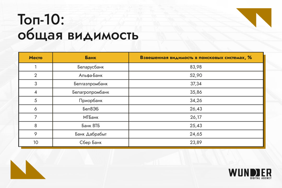 Общий рейтинг SEO-эффективности банков Беларуси вы найдете по ссылке. Ниже разберем результаты по отдельности.