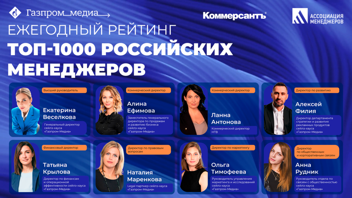 Свыше 30 представителей «Газпром-Медиа Холдинга» вошли в рейтинг «ТОП-1000 российских менеджеров»