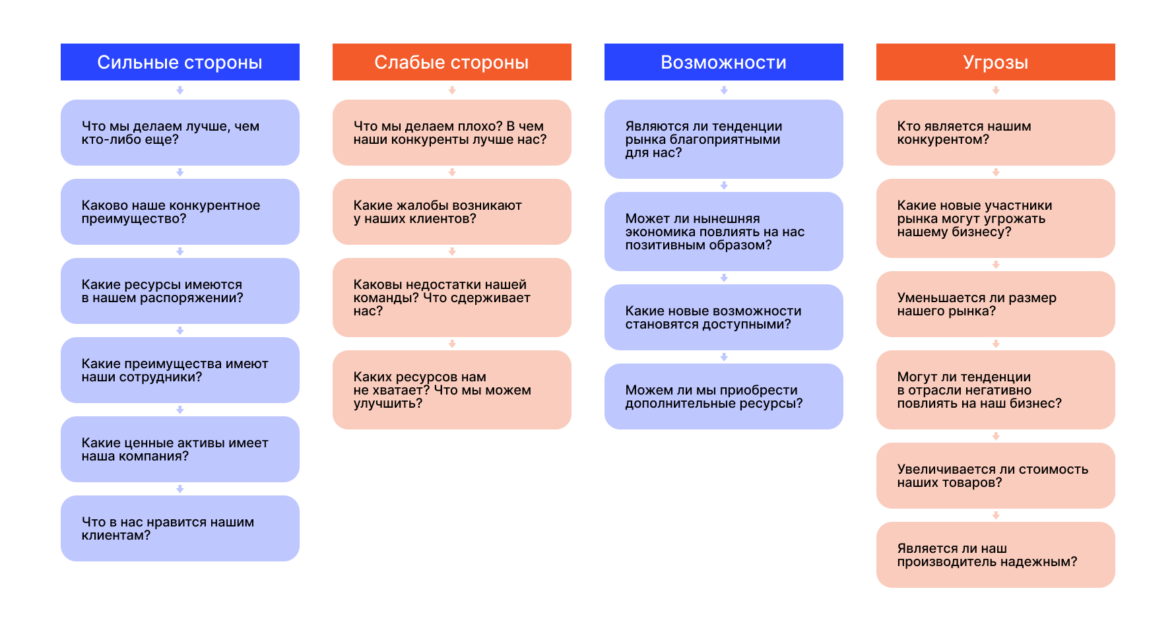 Самые распространенные вопросы для свот-анализа.