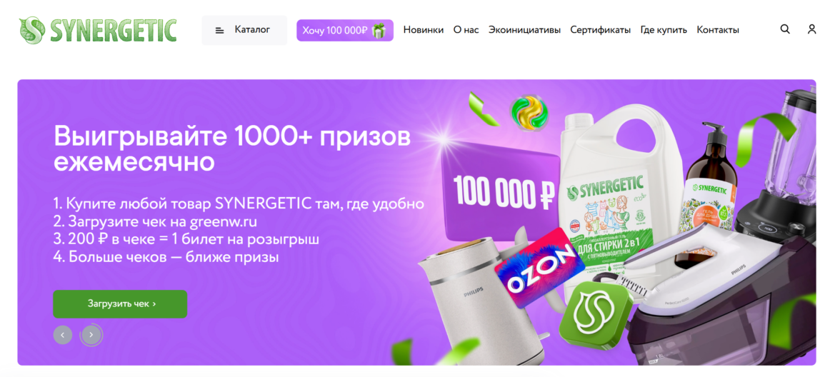 Механика чековых акций основана на оцифровке данных о покупках. Клиенты покупают любой товар бренда на любую сумму в рознице или онлайн, загружают чек на сайт или в чат-бота и участвуют в розыгрыше призов. Например, в программе лояльности SYNERGETIC можно выполнять задания и получать дополните баллы. Чем больше покупок и баллов, тем выше шансы выиграть призы. Часть средств от реализации продуктов SYNERGETIC направляется на экологические инициативы, в том числе посадку деревьев, что усиливает вовлеченность аудитории.