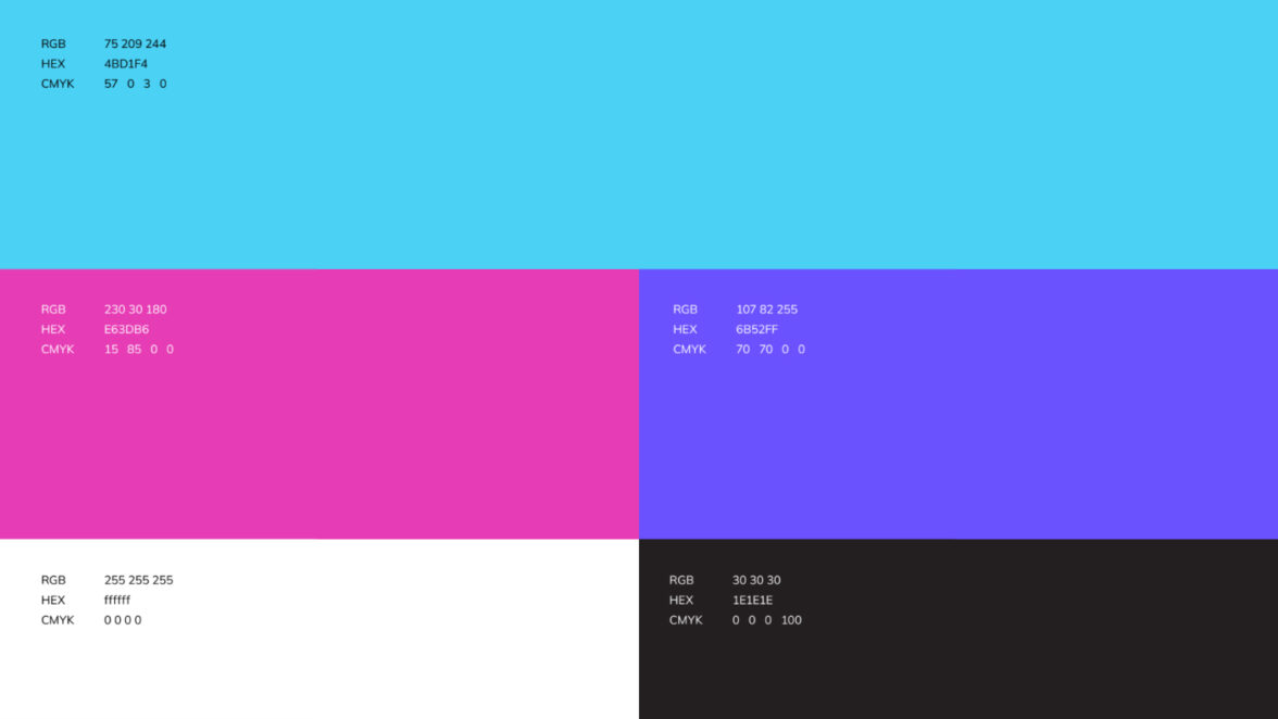 Палитру мы собрали яркую и сочную — как и сами напитки. Яркий голубой, фиолетовый и насыщенная фуксия — цвета ассоциируются с ягодами и фруктами, их буквально хочется съесть. А на контрасте палитра позволяет делать акцентные комбинации и строить динамичные композиции.