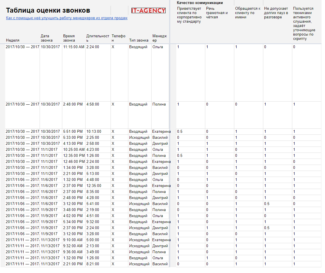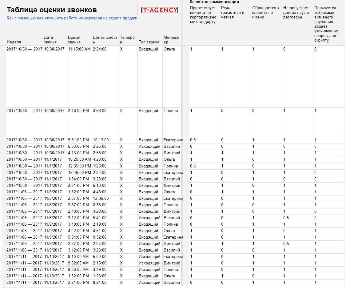 Таблица оценки звонков: как улучшить работу менеджеров из отдела продаж